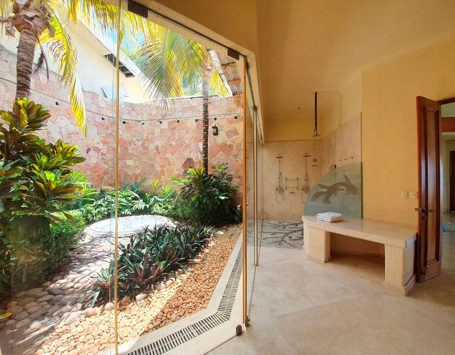 Recámara principal con cama King Size, estancia y TV room, cuarto de vapor, vestidor, jacuzzi, regaderas de presión.