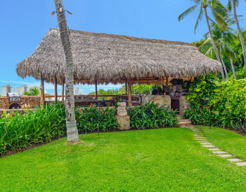 La Palapa al aire libre (Pabellón de Entretenimiento) tiene con un hermoso bar y comedor al aire libre así como un salón, una barbacoa a gas incorporada con un área de servicio de buffet con azulejos.